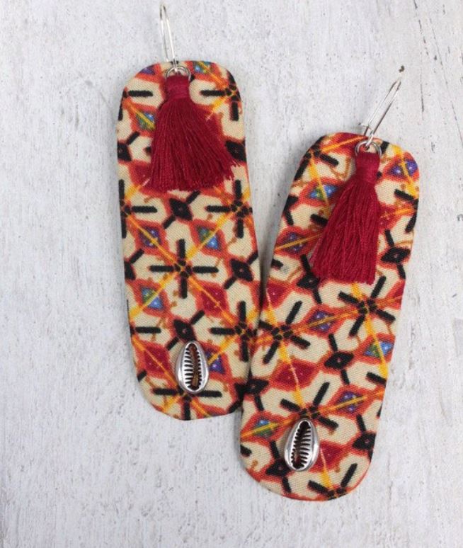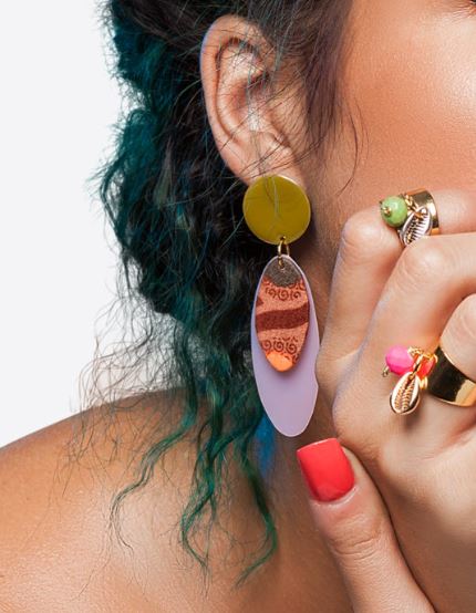 La particularité des bijoux d’Ohé Création est l’association du tissu pagne à de nombreuses matières tels que le cuir, le laiton, le coton, le coquillage, les perles… Le résultat est vraiment harmonieux et original.